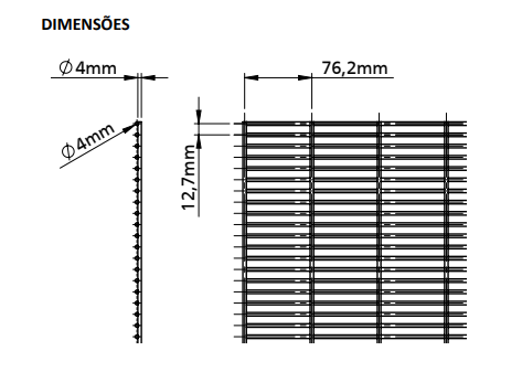 Dimensão da malha: 76,2 x 12,7 mm