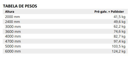 - Variedade de alturas até 6 metros
